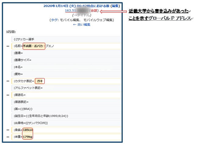 より、「近畿大学のネットワークから、記事内容にまったく関係のない記述、いたずらと思われる編集等が